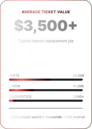 You’re bidding on BIG BOY JOBS. Your average ticket is $3,500+ for injectors, clutches, radiators. Other